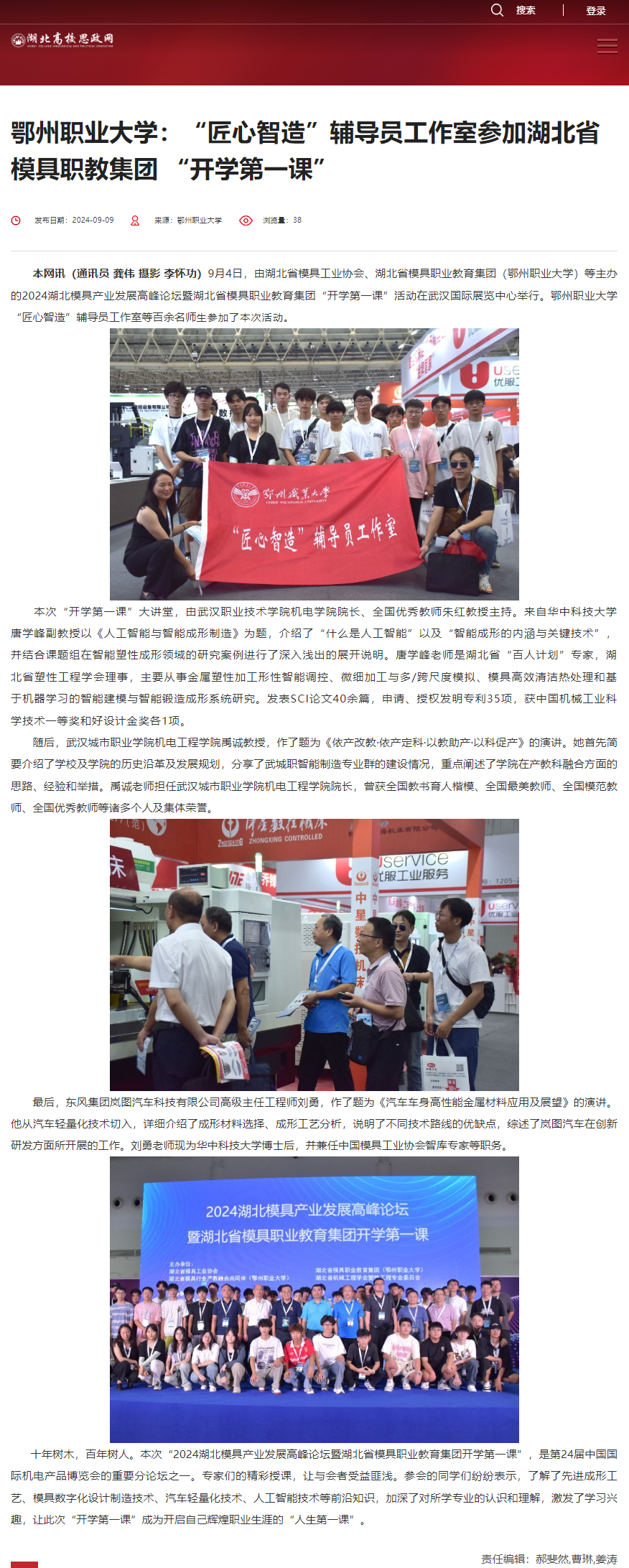 湖北高校思政网——鄂州职业大学:“匠心智造”辅导员工作室参加湖北模具职教集体“开学第一课”