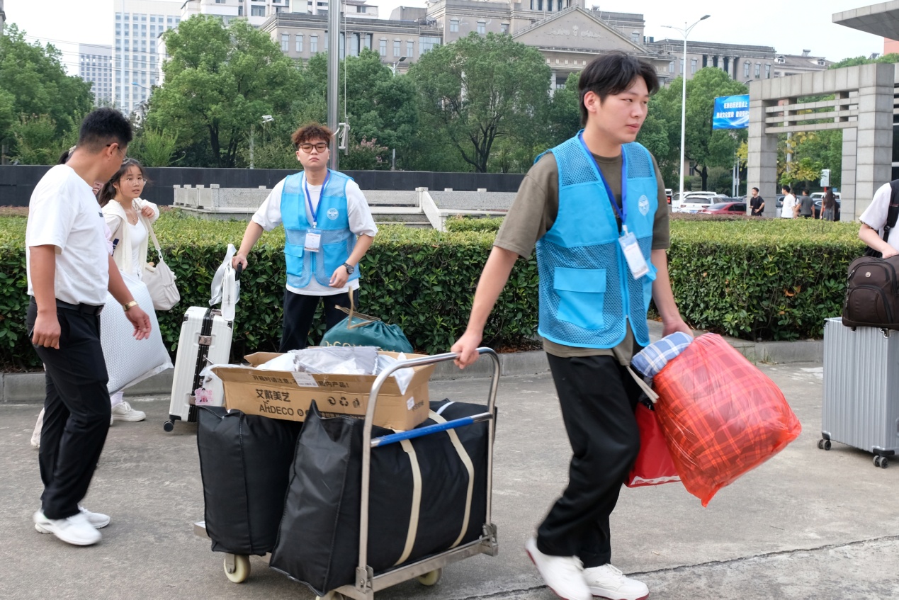 校园直通专车、校内摆渡车一一趟趟往返,把新生、家长及行李一车车送到校园报到点、送到宿舍楼下。