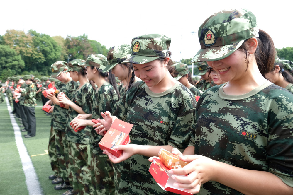 本网讯 中秋佳节是阖家团圆的日子,但我校5700余名2024级新生因为军训不能回家,这个中秋节他们在训练场上和教官、老师们一起度过。9月16日(农历八月十四)上午,学校特意为新生和教官们准备了月饼,缓解他们的思乡之情。“学校发的月饼让我们吃出了家的温暖,不出校园也能感受到节日的氛围。” 同学们拿着学校发的月饼,每一张笑脸上都洋溢着感动与喜悦。