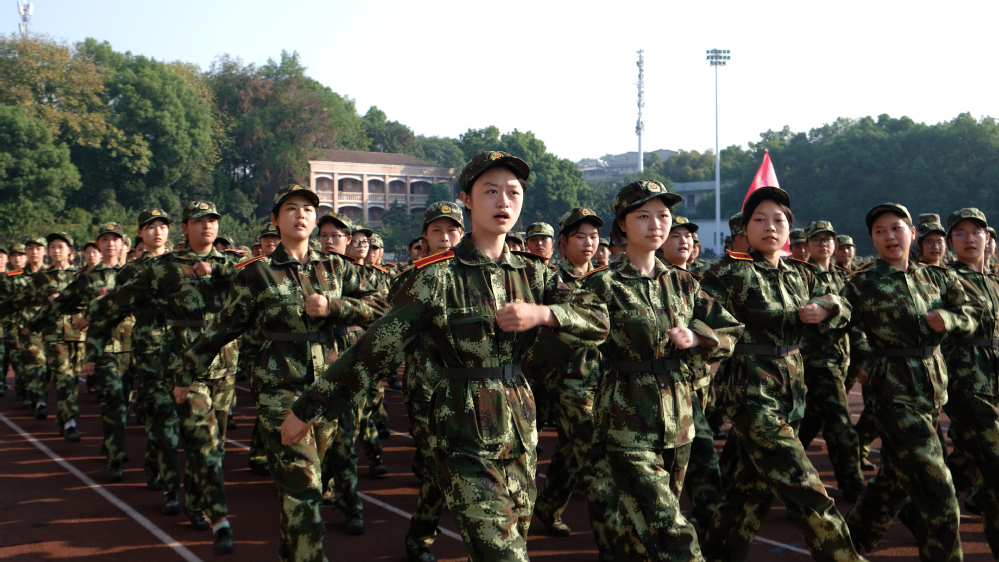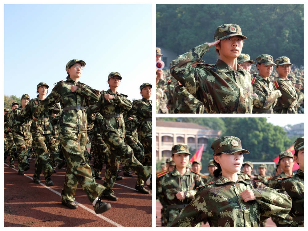 5000余名参训学生身着迷彩,昂首挺胸,依次通过主席台。响亮的口号、标准的动作、整齐的步伐,充分展示了我校学子朝气蓬勃、积极向上的青春风采。