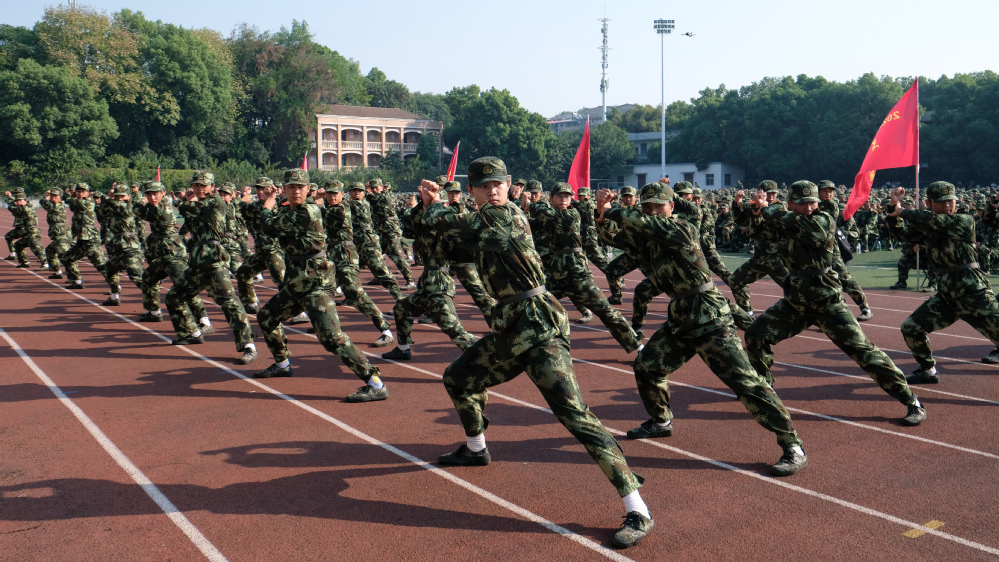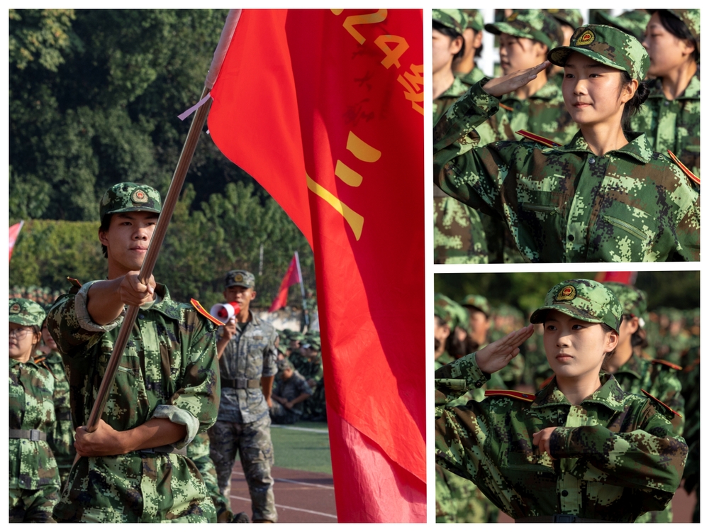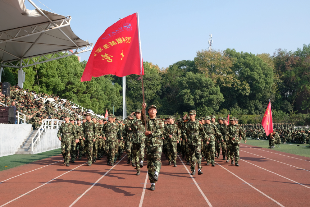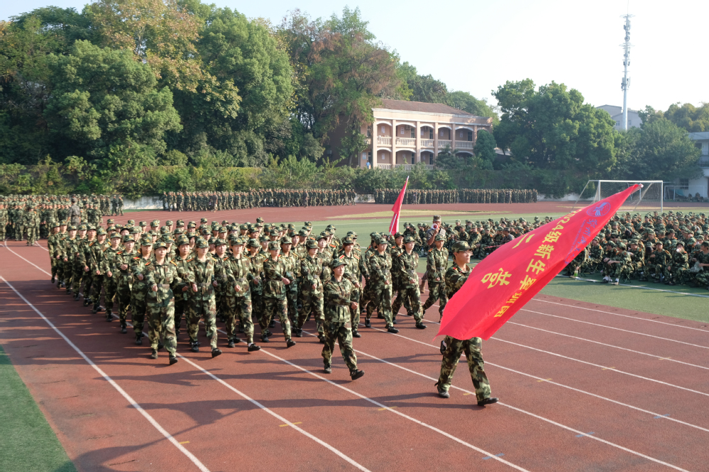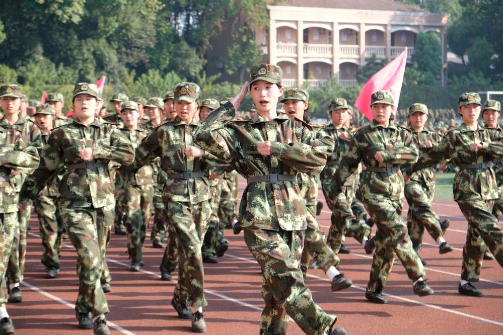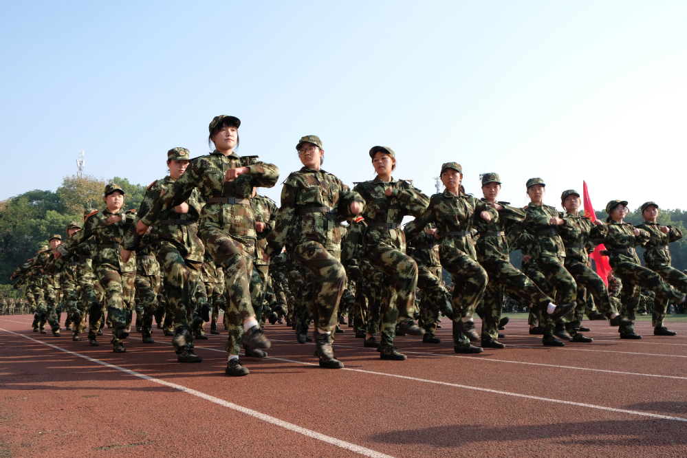 5000余名参训学生身着迷彩,昂首挺胸,依次通过主席台。响亮的口号、标准的动作、整齐的步伐,充分展示了我校学子朝气蓬勃、积极向上的青春风采。
