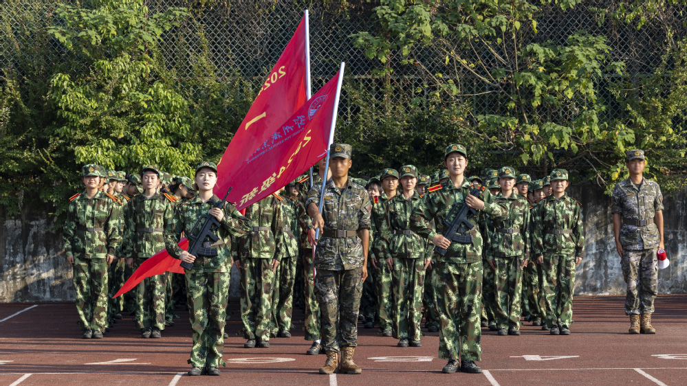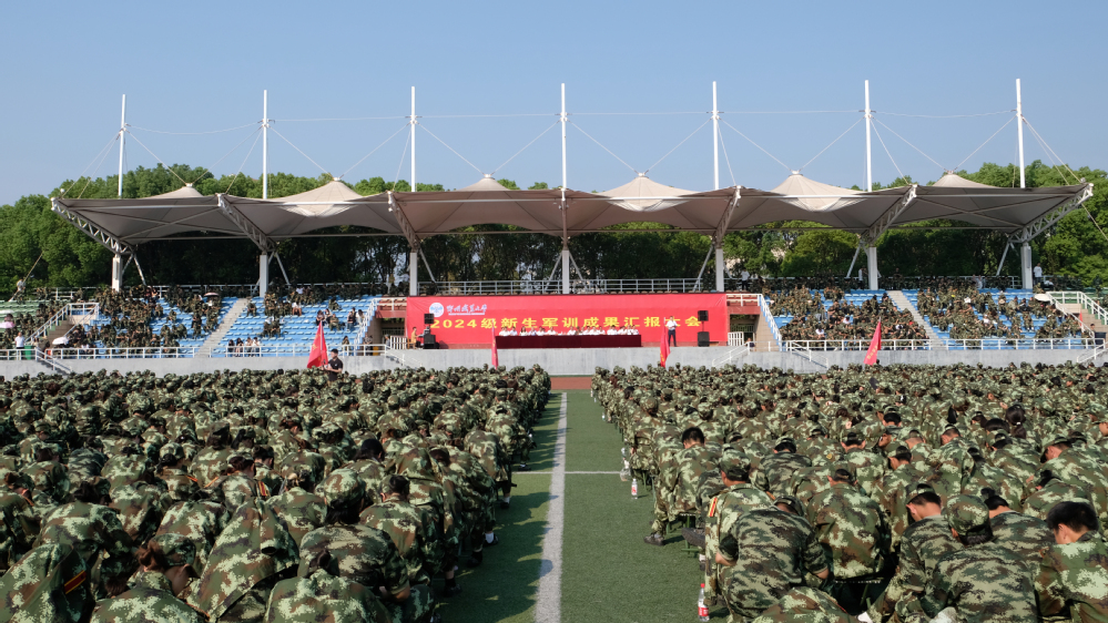 伴随着雄壮的国歌声,新生军训成果汇报大会正式拉开序幕。