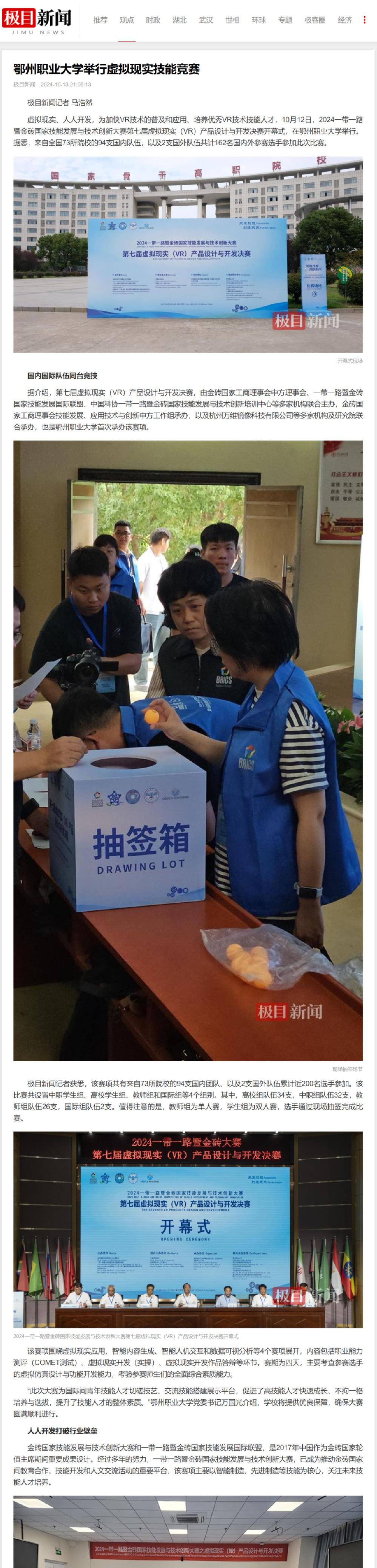 《今日头条》新闻来源链接:鄂州职业大学举行虚拟现实技能竞赛-今日头条 (toutiao.com)
