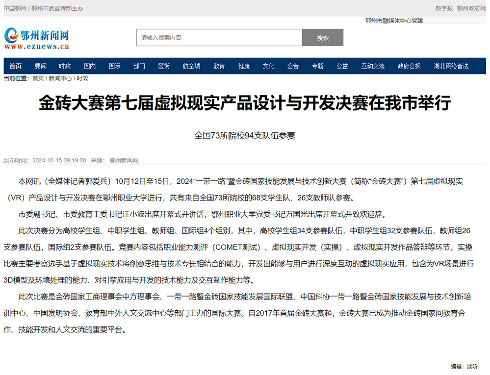 鄂州新闻网——金砖大赛第七届虚拟现实产品设计与开发决赛在我市举行