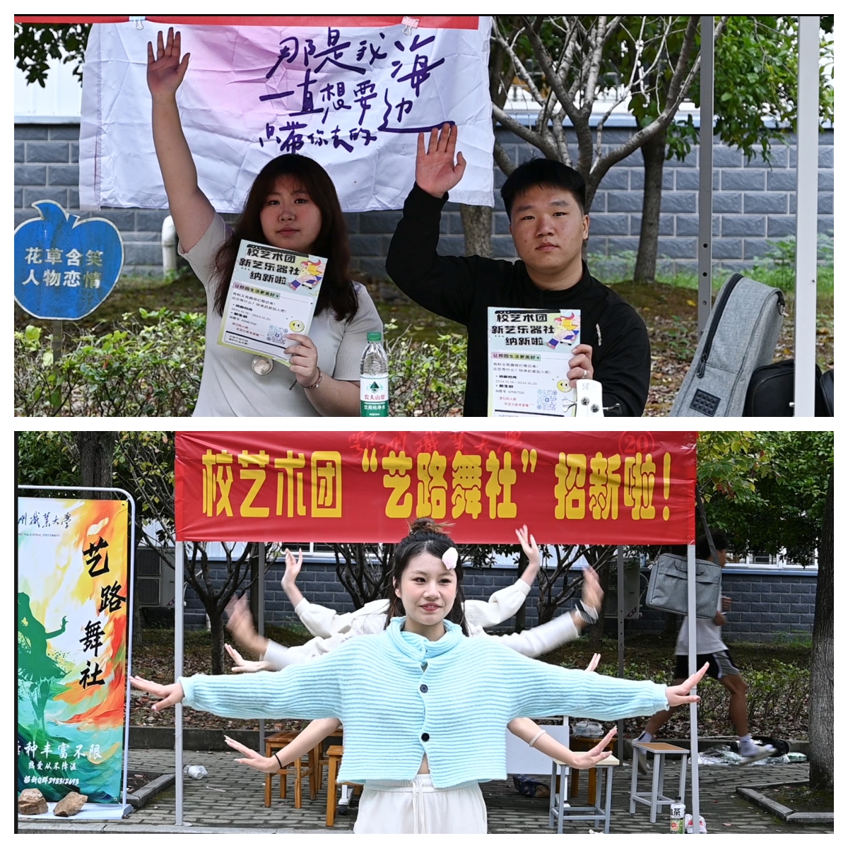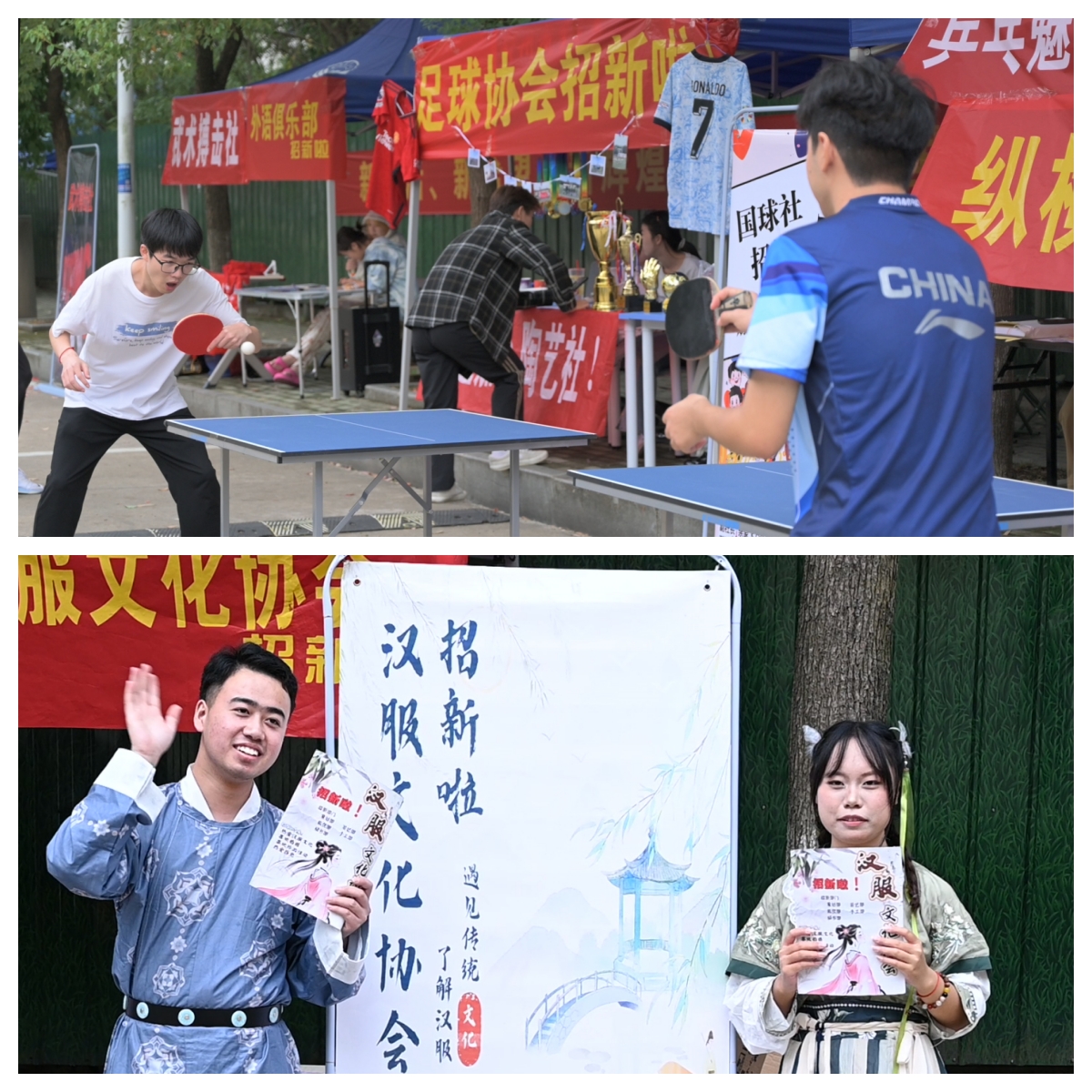 各类社团别出心裁,各显神通,让大家耳目一新的同时,也感受到校园生活的美好。艺路舞社、新艺乐器社、吉他社、花火音乐社用动听的音乐、魅力四射的舞姿表达对音乐和舞蹈的热爱;DIY手工协会、棋艺协会、手绘同盟协会、剪纸协会、陶艺社引导同学们感受动手实践的乐趣;美艺协会、礼仪模特会、美妆协会向大家展示时尚与美学;计算机协会、CC软件协会、CAD/CAM社团带领大家深入了解计算机技术与软件运用;排球社、足球协会、武术搏击社、国球社、羽毛球协会邀请同学们一起体验运动的快乐; cosplay各种动漫角度的动漫社、身着华服的汉服社同样吸引眼球,展现出校园文化的丰富多彩、开放与包容。许多2024级学子纷纷奔赴热爱,加入了自己心仪的组织与社团。