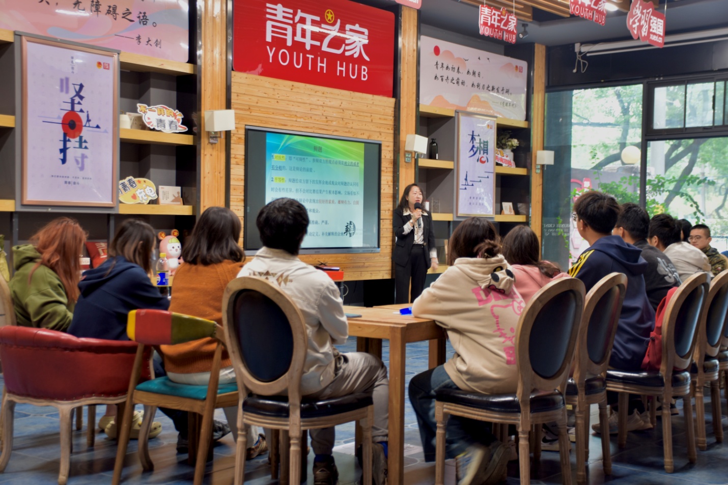 本网讯(学生实习记者 刘畅 李宏春/文 学生记者 刘加毅/摄) 10月21日,由我校和市新华书店联合举办的“提升辩论技巧”辅导沙龙在学习强国线下体验馆新华书店一楼青年之家举行。此次讲座由我校副教授、国家级普通话测试员熊学敏主讲,我校学生代表和热爱辩论的社会人士共同参加。