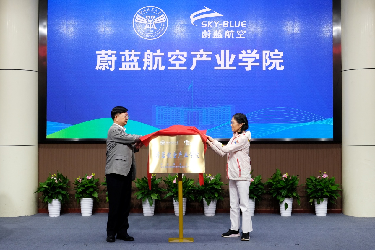 湖北省社科联党组成员、副主席刘卫桥,湖北蔚蓝通用航空科技股份有限公司副总裁李方林为蔚蓝航空产业学院揭牌。