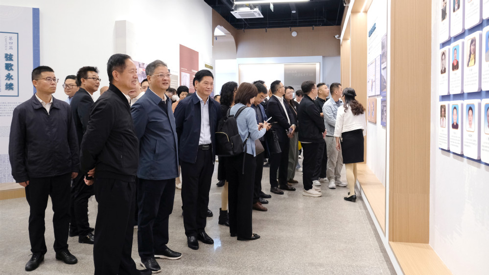 校友们边听讲解边追忆往事,赞叹母校翻天覆地的变化。有些校友还惊喜地在展板上找到了自己的照片,回忆起往日在母校的求学时光和印象深刻的同窗、老师,不禁感慨万千。大家虽年龄不同、在校年代不同,但纷纷表示,母校艰苦奋斗、奋楫笃行的精神对他们影响深远,并真诚祝愿母校在接续奋进中再谱华章。