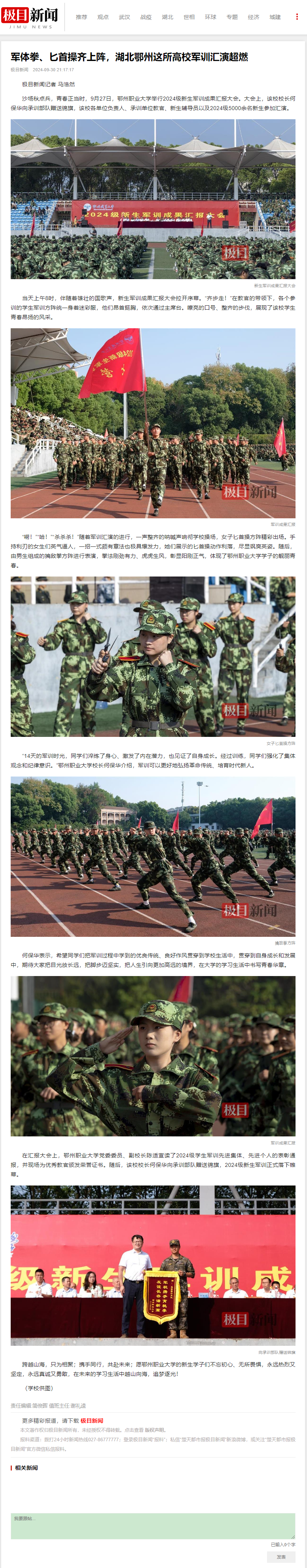 极目新闻——军体拳、匕首操齐上阵,湖北鄂州这所高校军训汇演超燃