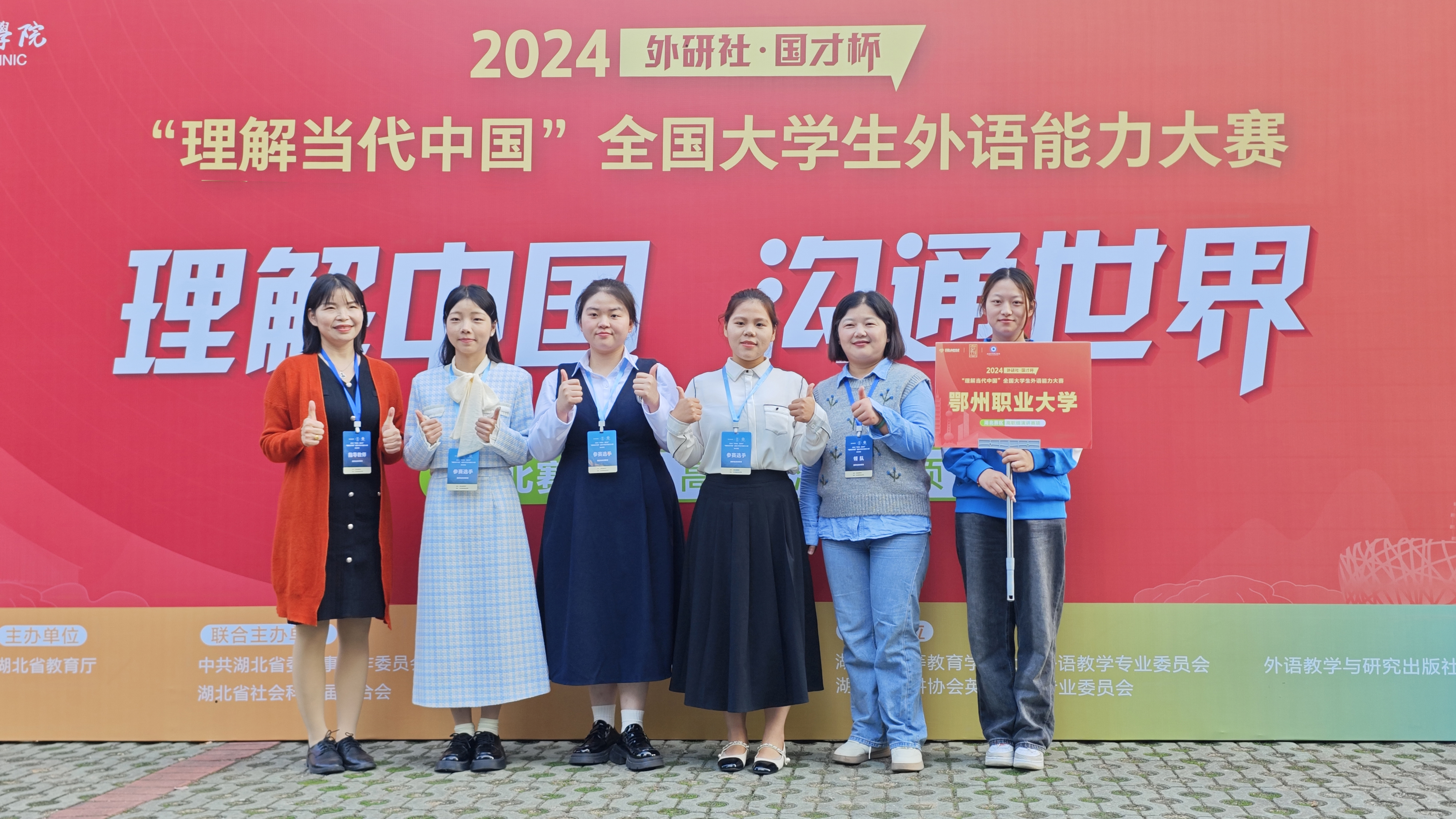 本网讯(通讯员 杨培沛) 近日,在湖北省教育厅主办的2024年“外研社·国才杯”“理解当代中国”全国大学生外语能力大赛(湖北赛区)中,我校外语课(部)学生张慧慧、李依林、金淼淼、陈科昊等 6名选手参加了高职组英语写作和英语演讲两个赛项,共斩获1金5银的优异成绩,获奖数量与质量再创新高。