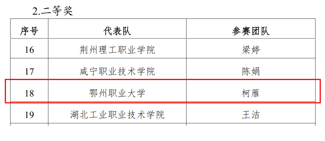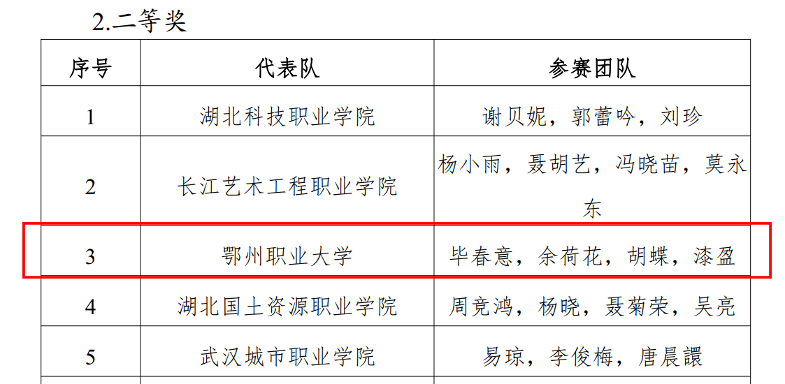 本网讯 近日,2024年“中银杯”湖北省职业院校技能大赛教师教学能力大赛落下帷幕。我校参赛教师喜获二等奖2项,三等奖3项。