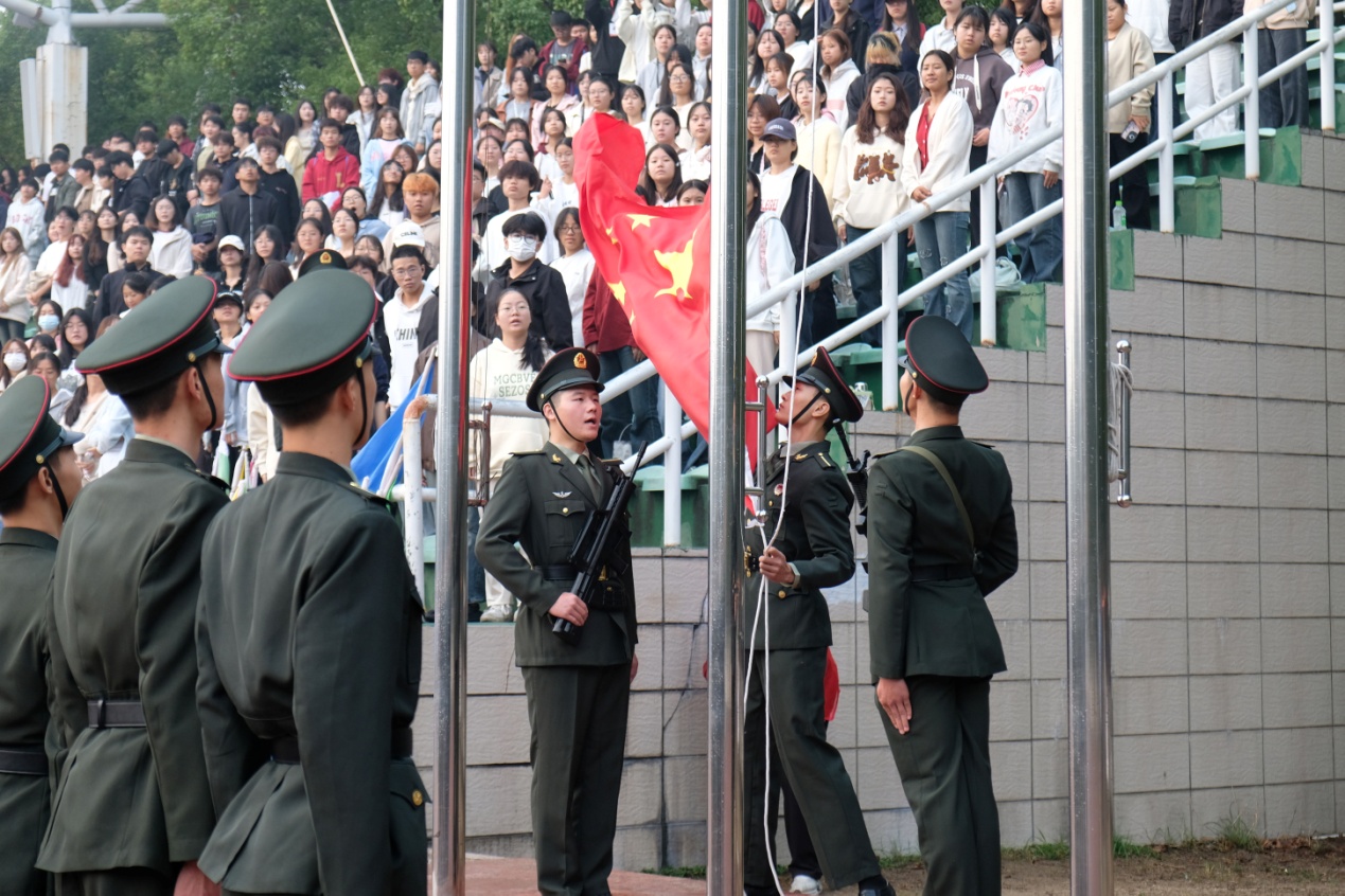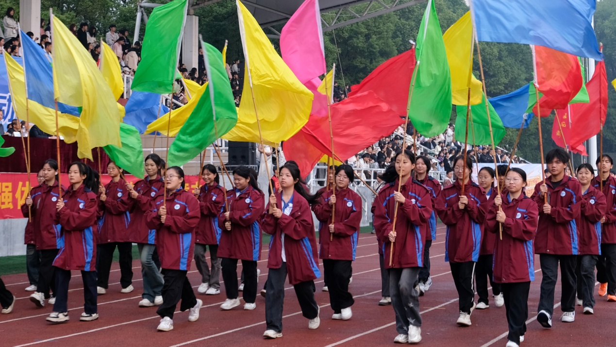 五星红旗在雄壮的国歌声中冉冉升起,运动会开幕式正式拉开帷幕。