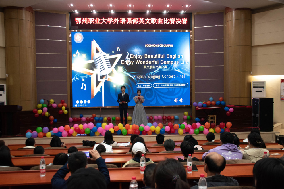 本网讯(学生记者 刘畅/文 刘加毅/摄)为丰富学生课余生活,激发学习英语的兴趣,11月20日晚,由外语课部主办,公共英语教研室、小学英语教研室承办的鄂州职业大学英文歌曲比赛决赛在五号教学楼学术报告厅举行,来自各院(部)的16名选手参加比赛。