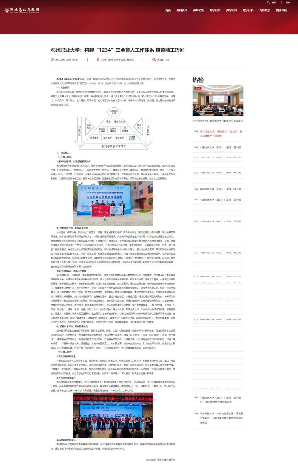 湖北高校思政网——鄂州职业大学:构建“1234”三全育人工作体系 培育能工巧匠