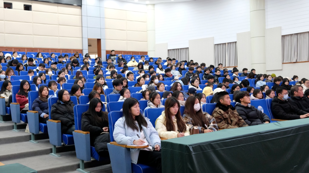 本网讯(记者 何建华)12月19日下午,“五星红旗在心中飘扬”——铸牢中华民族共同体意识教育专题讲座在图书馆二楼学术报告厅举行。此次讲座邀请到武汉大学老专家科学报告团成员密新武教授进行授课。来自各院(部)的近300名学生代表到场聆听。