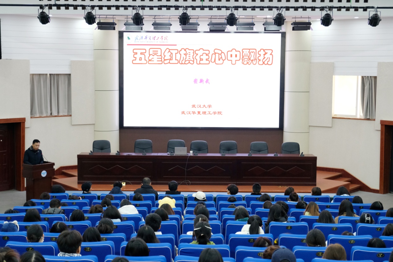 五星红旗是中华人民共和国的国旗,是中华人民共和国的象征和标志。五星红旗的每一次飘扬都映衬着亿万国人的欢笑与希望,彰显着亿万人民的意志与期望。在这场讲座中,同学们懂得了五星红旗与国家荣誉之间的紧密联系,增强了国家观念和做中国人的志气、骨气、底气。大家纷纷表示,将在今后的学习生活中不断探索、追求卓越,练就过硬本领,努力在实现民族复兴的道路上奋勇争先。