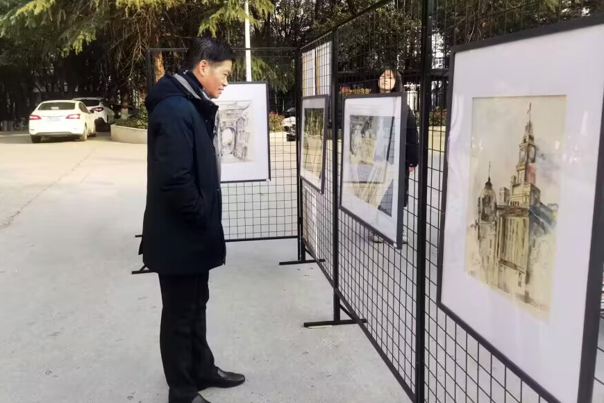 副校长马凌军观看美术习作展