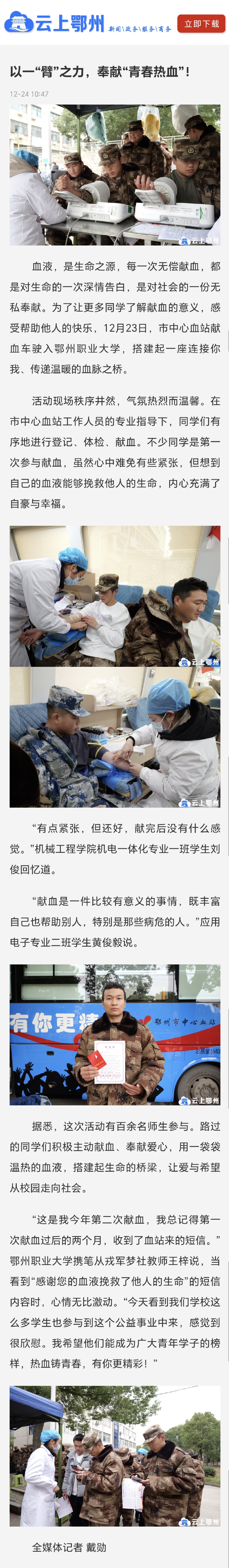 云上鄂州——以一“臂”之力,奉献“青春热血”!