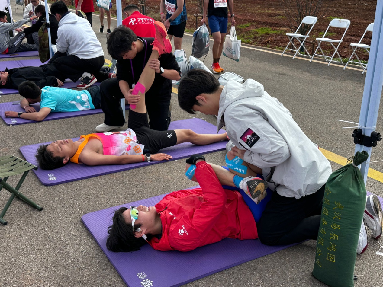 作为医疗保障主力军,由我校医学院234名学生志愿组成的医疗组成为赛道上的 “生命守护者”。他们分布在赛道沿线各医疗点上,为选手提供专业支持,成功处置抽筋、擦伤等多起突发情况。