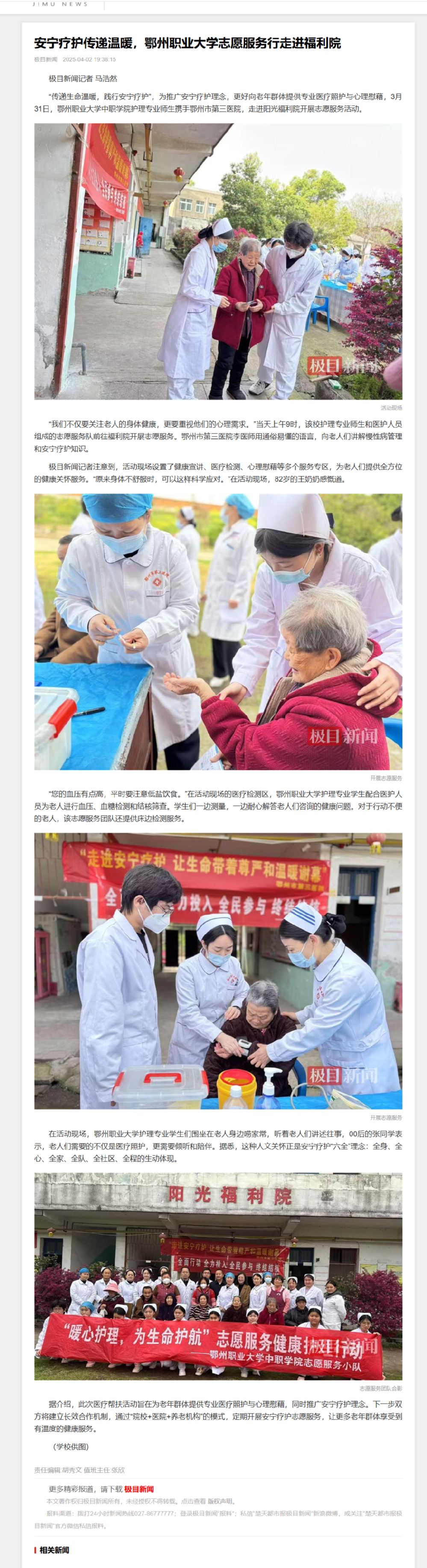 极目新闻——安宁疗护传递温暖,鄂州职业大学志愿服务行走进福利院