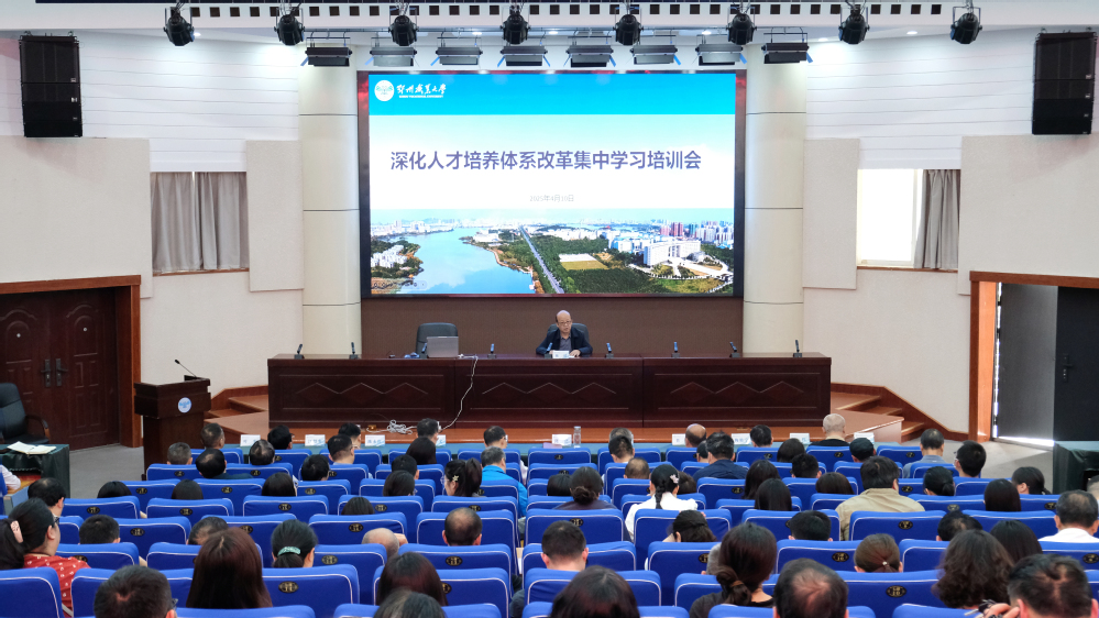 本网讯(记者 何建华)4月10日下午,我校深化人才培养体系改革集中学习培训会在图书馆二楼学术报告厅举行。全校处室、院(部)负责人以及骨干教师代表参加学习,培训会由副校长陈适主持。