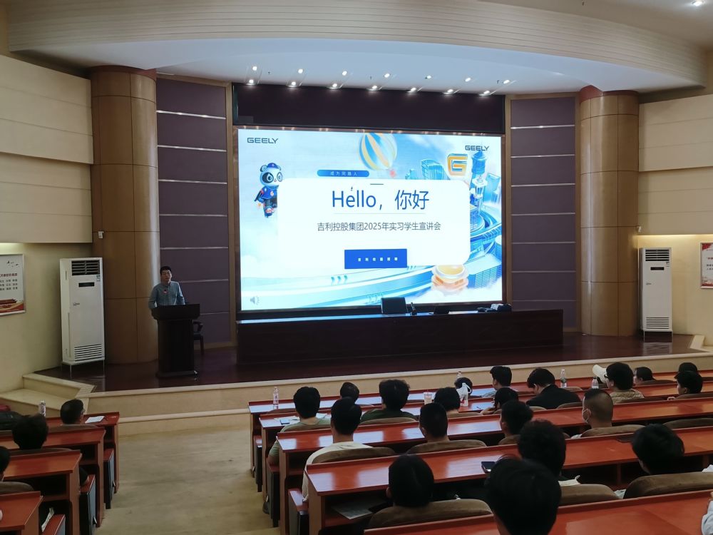 当天下午,吉利汽车集团在求真楼报告厅举行2025实习学生宣讲会,包括吉利订单班学员在内的二百余名学生参加,进一步了解企业用人需求、学习规章制度,不少同学收到了后续的面试邀约。“这是一次宝贵的实习工作机会,希望能在吉利这个广阔平台上学习更多专业知识,锻炼技术本领。”吉利订单班学员、2023级汽车检测与维修技术专业郭鑫羽同学说。