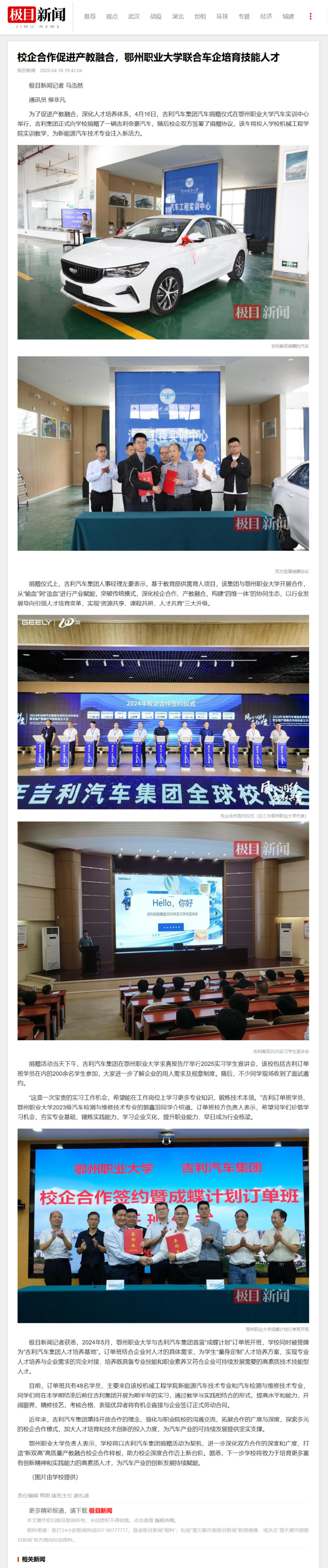 极目新闻——校企合作促进产教融合,鄂州职业大学联合车企培育技能人才
