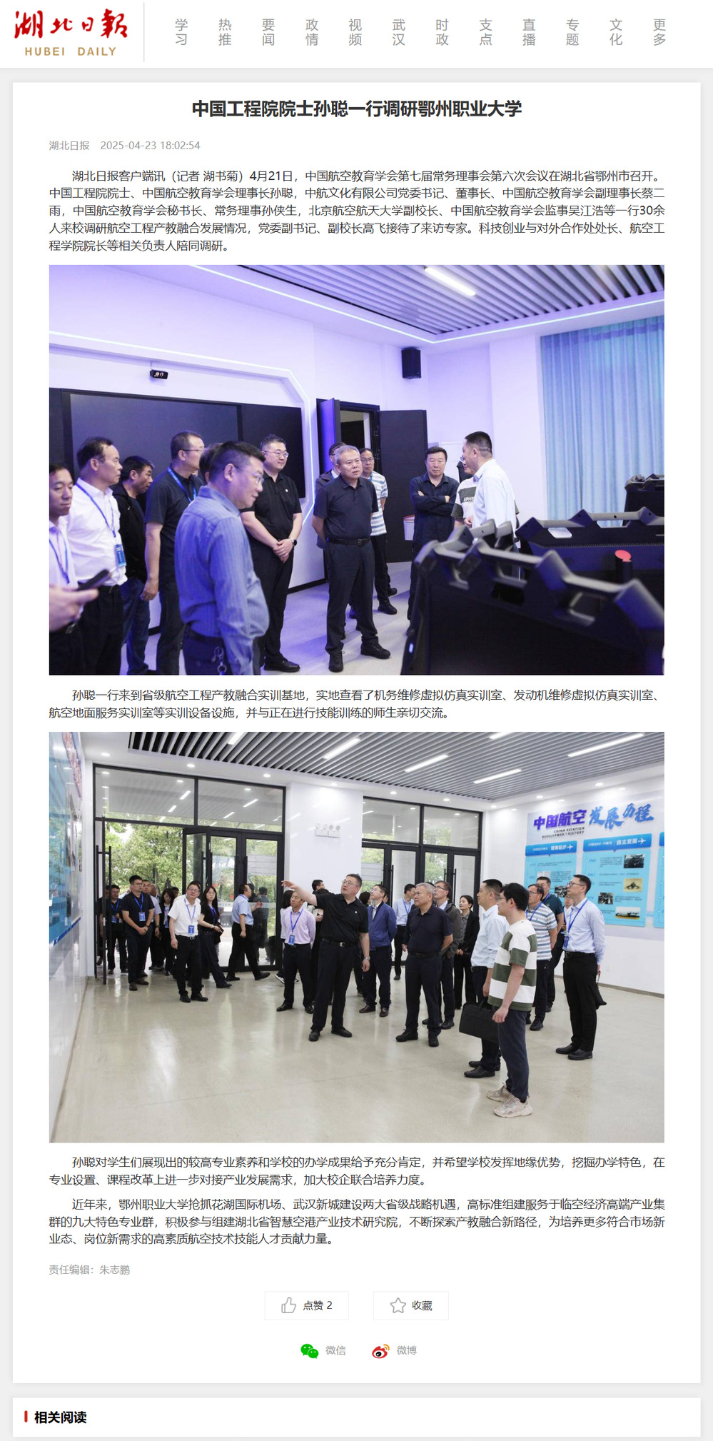 湖北日报客户端——中国工程院院士孙聪一行调研鄂州职业大学