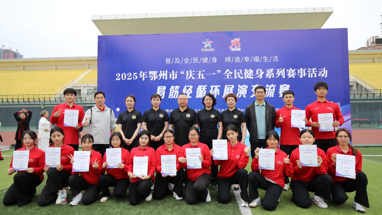 4月27日,鄂州市庆五一全民健身系列活动之易筋经循环展演交流赛圆满落幕。我校首次组建的健身气功代表队凭借出色表现,获得集体项目一等奖,实现参赛“开门红”。 (通讯员 程斌鹏)