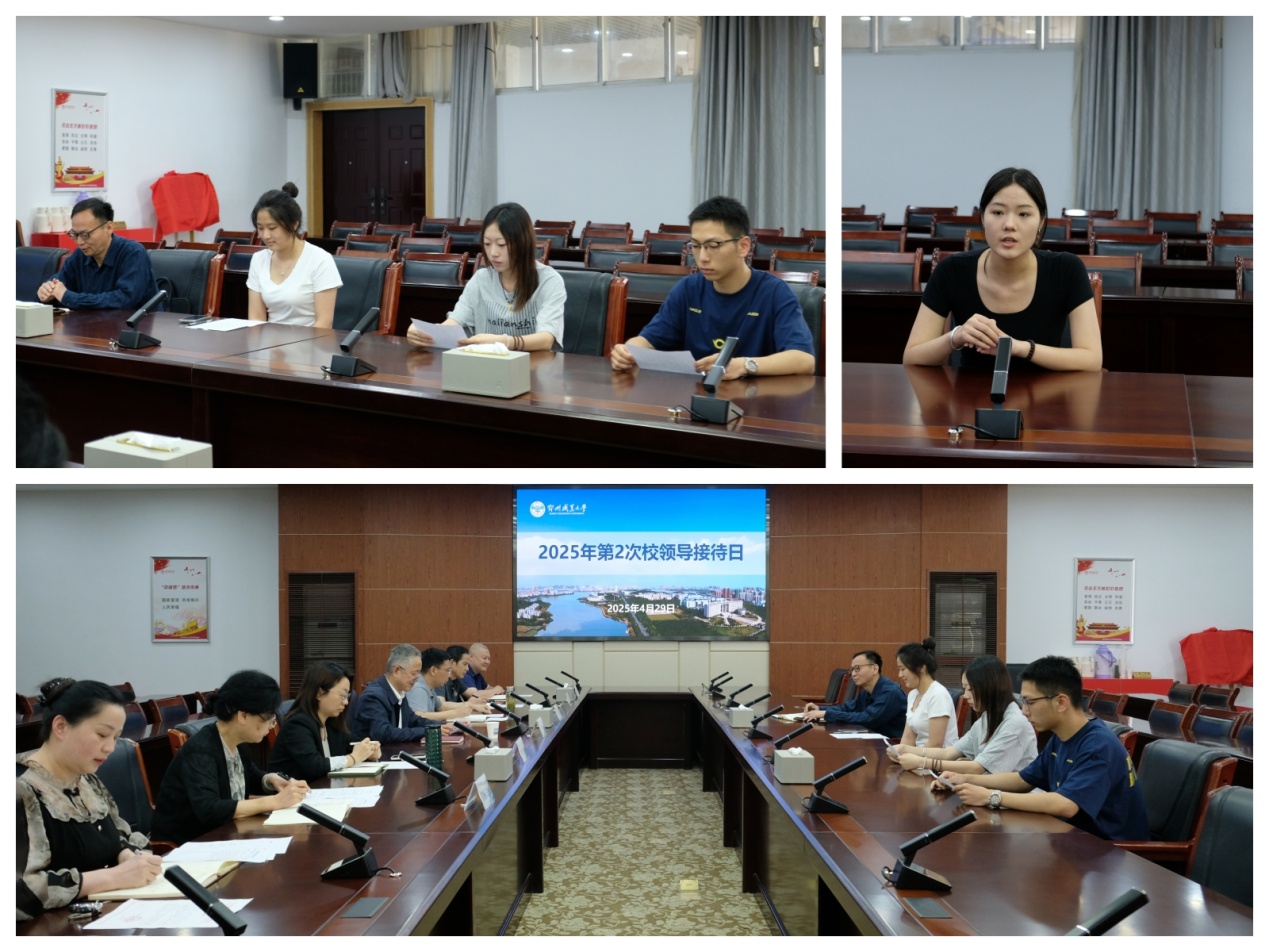 本网讯(记者 何建华)4月29日,我校2025年第二次校领导接待日活动在图书馆一楼1号会议室举行。校党委副书记王家绪与信息工程学院、教育管理学院师生代表面对面交流,现场协调解决师生关切问题。
