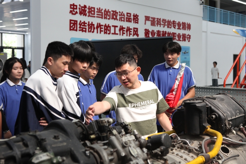 仪式结束后,鄂州市中专、中小学学生代表走进我校国家建筑技术、航空工程、汽车工程等实训中心,近距离参观学校教学实训设施,学习相关专业知识。