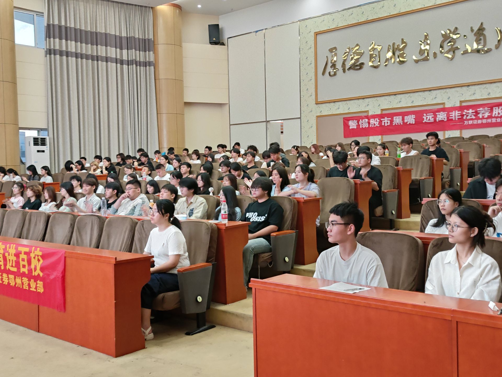 万联证券工作人员则聚焦金融诈骗防范,围绕“心莫贪 擦亮眼 防诈骗”主题,系统讲解了非法集资、校园贷等非法金融活动的特征,并现场演示“三查三看”识别技巧,提醒大学生警惕金融陷阱。
