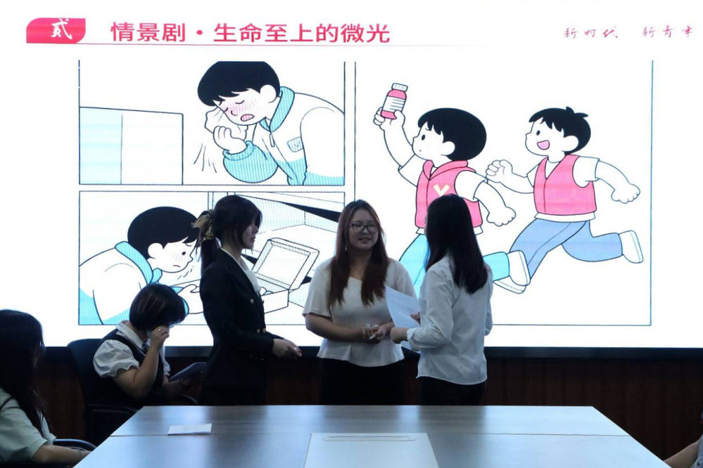 通过情景剧再现黄麻起义中红军护士背着伤员艰难转移的场景,结合父辈亲身经历讲述1998年长江特大洪水中子弟兵抗洪抢险的英勇事迹……宣讲团结合实际、创新形式,以沉浸式、互动性的宣讲内容,生动阐释了三大精神的内涵意义和时代价值,受到师生一致好评。