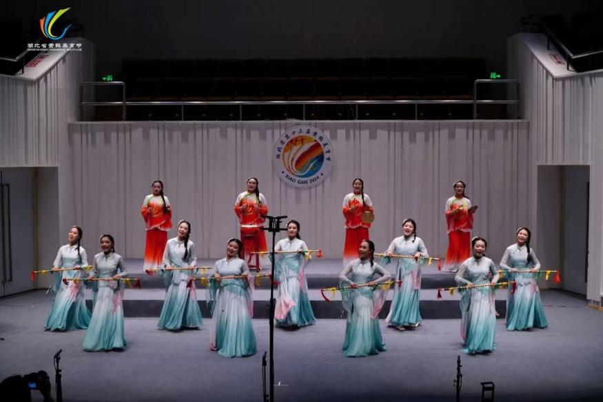 《新唱打花鞭》取材于鄂东地区传统民俗舞蹈“打花鞭”,这项起源于明清时期的非遗技艺,原为乞巧节女子手持缠彩竹竿边唱边舞的民俗表演。创作团队在保留“鞭打四方”“彩穗翻飞”等核心元素的同时,融入现代声乐技法与多声部合唱表演。