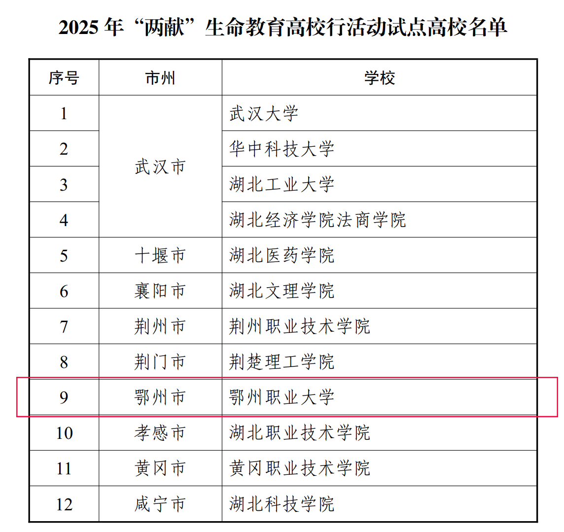 本网讯(记者 何建华) 近日,经前期申报和严格评审,我校成功入选2025年全省无偿献血和造血干细胞捐献(以下简称“两献”)生命教育高校行活动试点高校,全省共12所高校获此资格。
