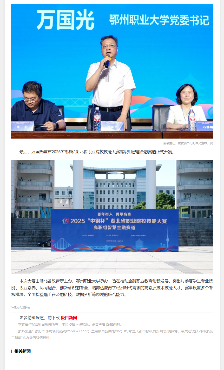 极目新闻——2025“中银杯”湖北省职业院校技能大赛智慧金融赛道在鄂州职业大学开幕