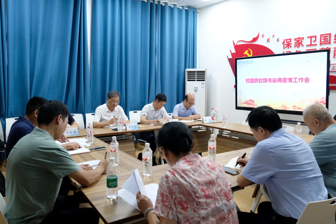 针对基孔肯雅热和登革热疫情防控新形势,校领导在东九栋现场召开会议,听取疫情防控相关工作汇报,部署新学期校园防疫工作,强调要精准施策、科学防控,守护师生健康安全。