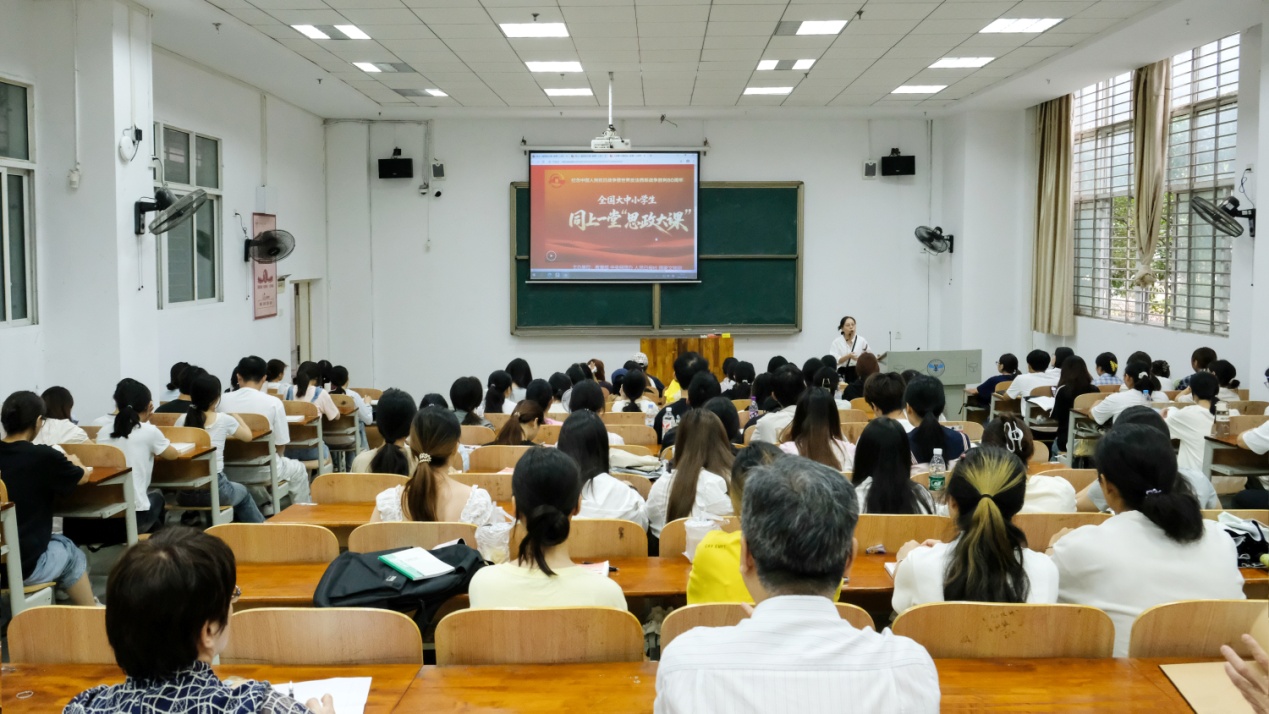 本网讯(记者 何建华/文 学生记者 占博霖/摄)9月18日,我校以分层施策、精准组织的方式,组织全校学生集中收看“弘扬伟大抗战精神 做光荣自豪中国人——纪念中国人民抗日战争暨世界反法西斯战争胜利80周年”思政大课之“大国担当”课程,推动思政教育入脑入心。