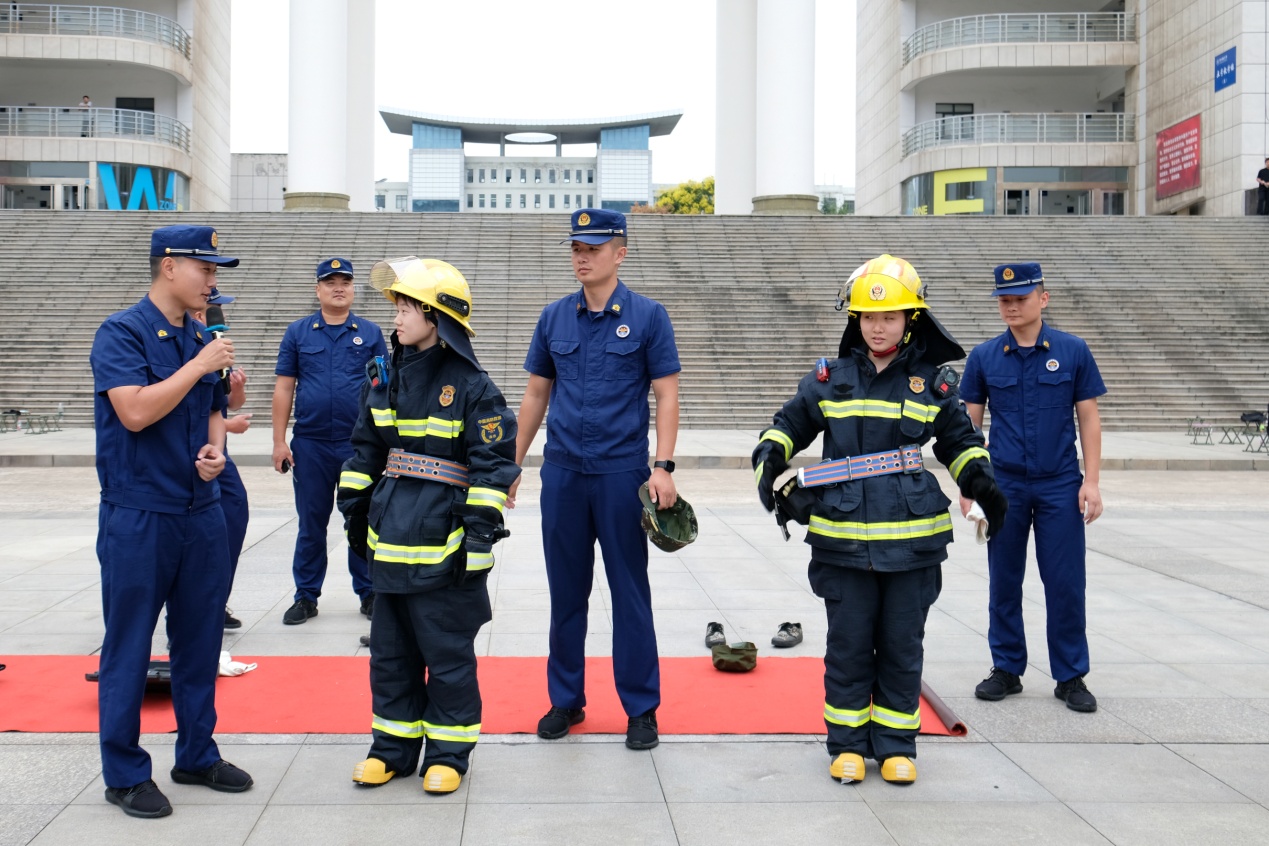 许多同学主动走近展示区,近距离认识各类消防器材,聆听使用讲解,并试穿消防服、体验高空救援,切身感受消防工作的艰辛与重要。