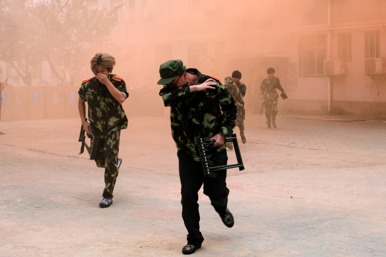 下午3时,演练正式启动。应急疏散演习在东五栋学生公寓展开。顷刻间,楼道内“浓烟”弥漫,警报声骤然响起。参训新生在教师和工作人员的指引下,沉着冷静、反应迅速,严格按照火灾避险要领,沿指定疏散路线快速、有序撤离至五号教学楼前广场的安全区域。整个演练过程紧张而不慌乱,用时短暂,达到了预期效果。