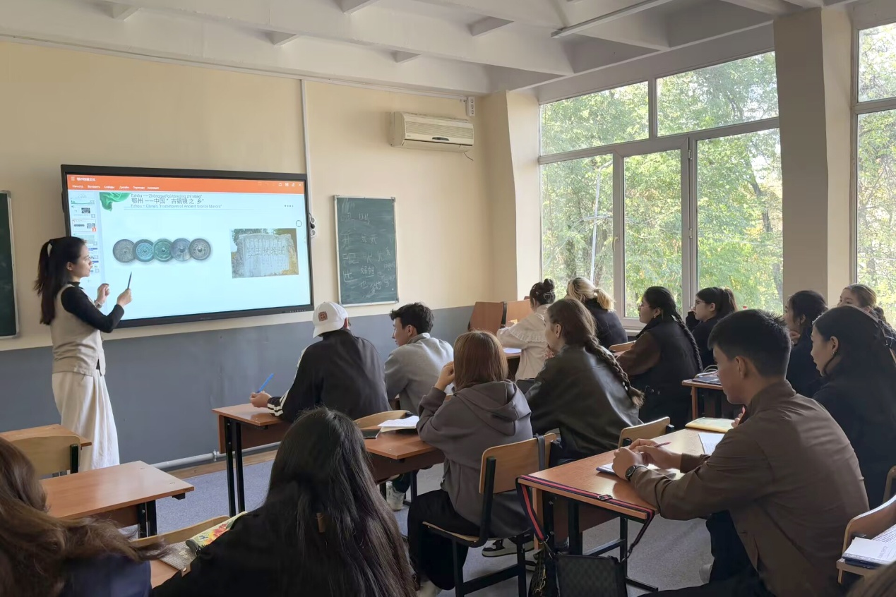 本网讯(通讯员 吴晓婷)为深入推进中哈文化交流,推动“中文+职业技能”项目落地见效,近日,我校国际汉语教师柯希茜赴哈萨克斯坦阿拉木图市的哈中国际语言学院,开展为期一个月的汉语教学与文化推广工作。期间,她以“鄂州铜镜文化”为主题,为当地师生带来一场精彩纷呈的中国传统文化体验。