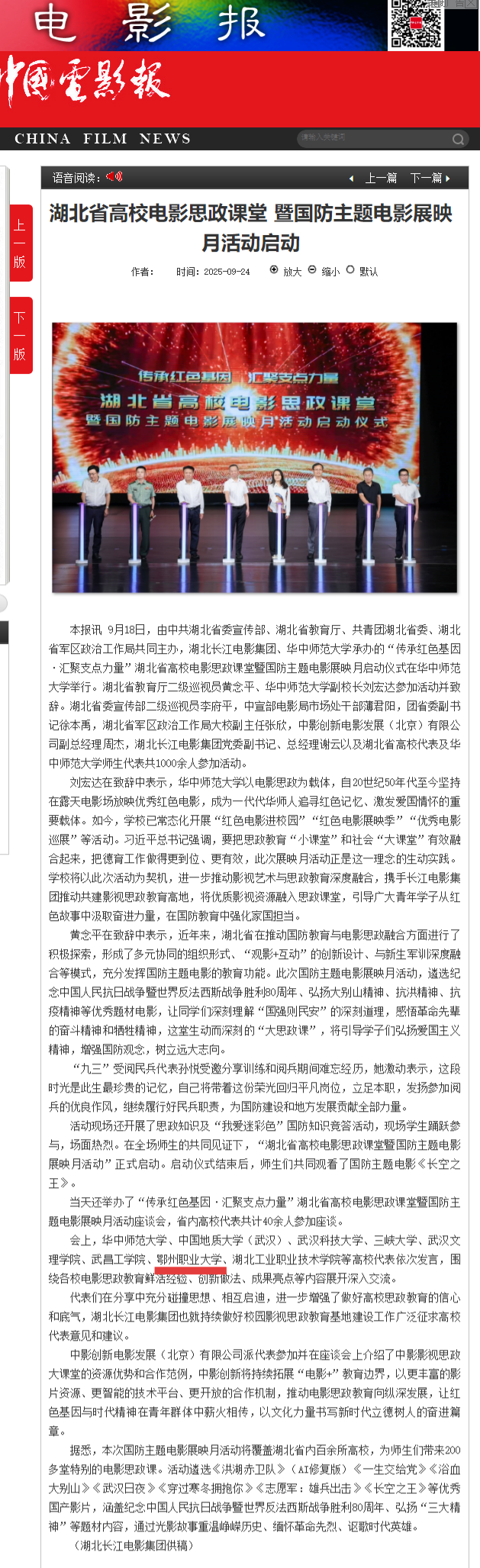 中国电影报——湖北省高校电影思政课堂暨国防主题电影展映月活动启动