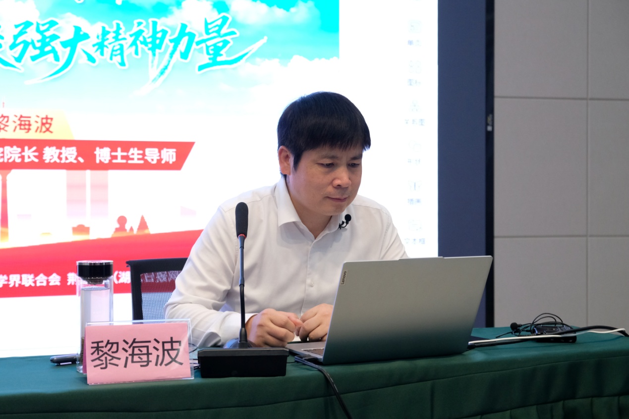 黎海波以“弘扬‘三大精神’ 为支点建设凝聚强大精神力量”为题,系统阐释了习近平总书记考察湖北重要讲话精神。他强调,“三大精神”对湖北加快建成中部地区崛起的重要战略支点具有重要支撑作用,并从纵向历史维度与横向地域维度解析了中国共产党人精神谱系中的大别山精神、抗洪精神、抗疫精神所蕴含的湖北标识。黎海波还以“我是谁?我从哪里来?我要到哪里去?”三问为引,结合党史资料、新闻案例与个人感悟,生动阐述了“三大精神”的内涵、背景及其时代意义,并就其价值意蕴与弘扬路径作了深入讲解。他指出,这三种精神是党和国家的宝贵财富,也是湖北在新的时代条件下必须传承与发扬的精神血脉。