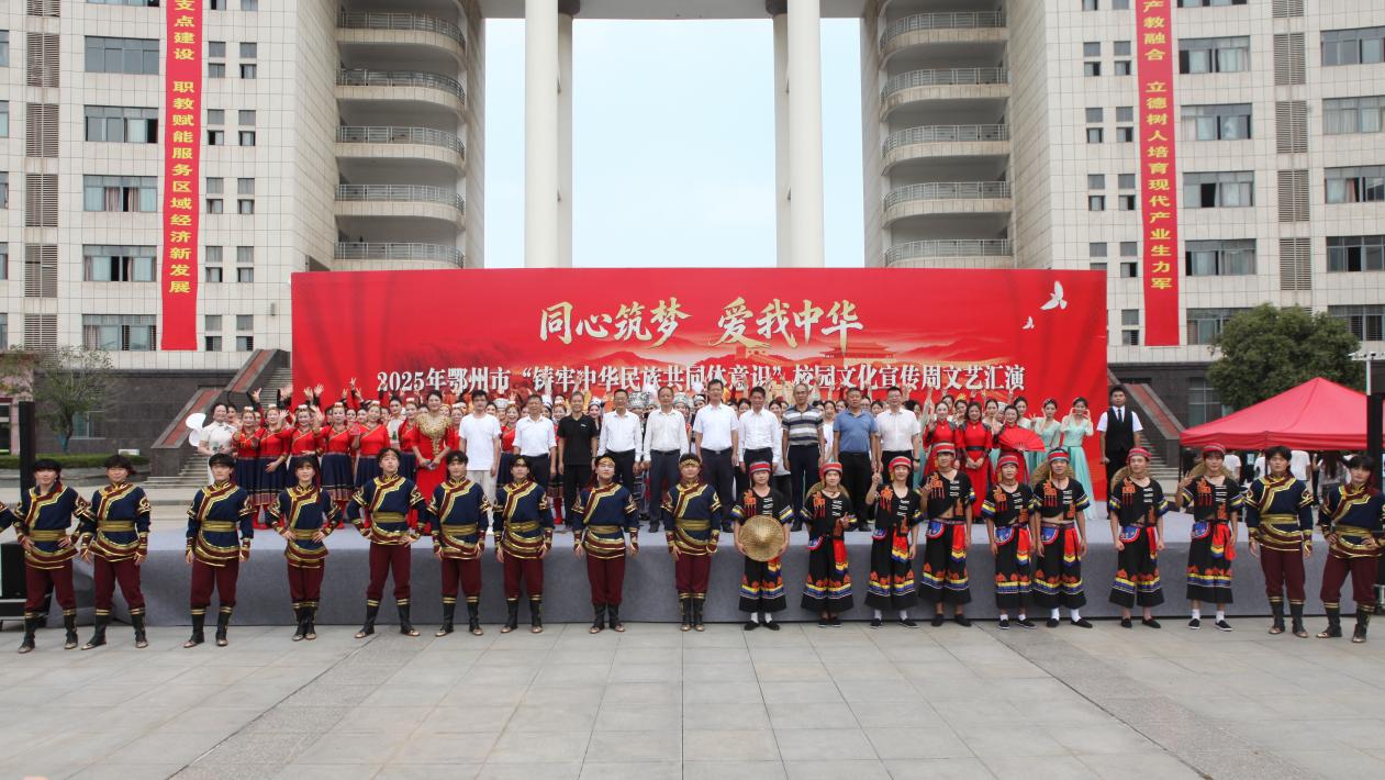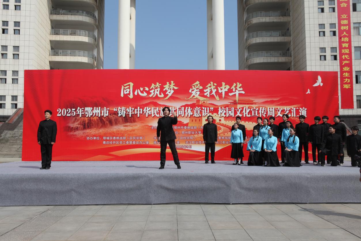 本报讯(记者 缑非凡、学生记者 段嘉成)中华人民共和国成立76周年之际,9月27日,由市委统战部(市民宗委)主办的2025年鄂州市“铸牢中华民族共同体意识”校园文化宣传周文艺汇演在我校求真广场举行,市内各单位选送的9组充满多民族风情的节目精彩上演。市委统战部副部长、市民宗委主任夏汉元出席并讲话,校党委副书记王家绪出席并致辞,副校长马凌军主持活动。