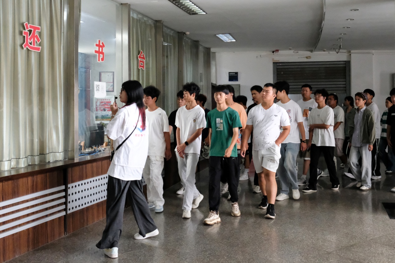 由图书馆教师与30余名读书协会学生组成的导览团队,带领新生实地体验了入馆流程、馆舍布局、各功能区开放时间等内容。