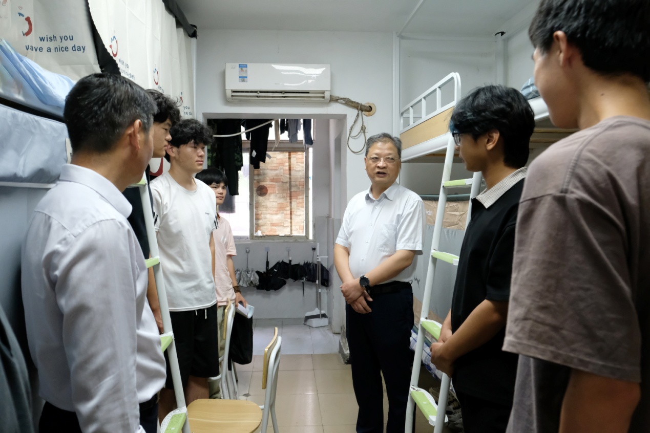 期间,万国光还走访了新生宿舍,与大一新生亲切交流,细致询问同学们的家乡情况、饮食适应和生活需求,认真倾听他们初入大学的感受,并希望大家尽快适应新环境、互帮互助、共同进步。