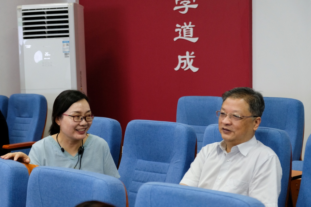 课后,万国光与张新梅老师亲切交流,对其授课内容与教学准备给予了充分肯定。他指出,思政课是落实立德树人根本任务的关键课程,希望教师们进一步结合学生专业特点,增强课堂针对性与吸引力,加强师生互动,激发学生的思辨热情。