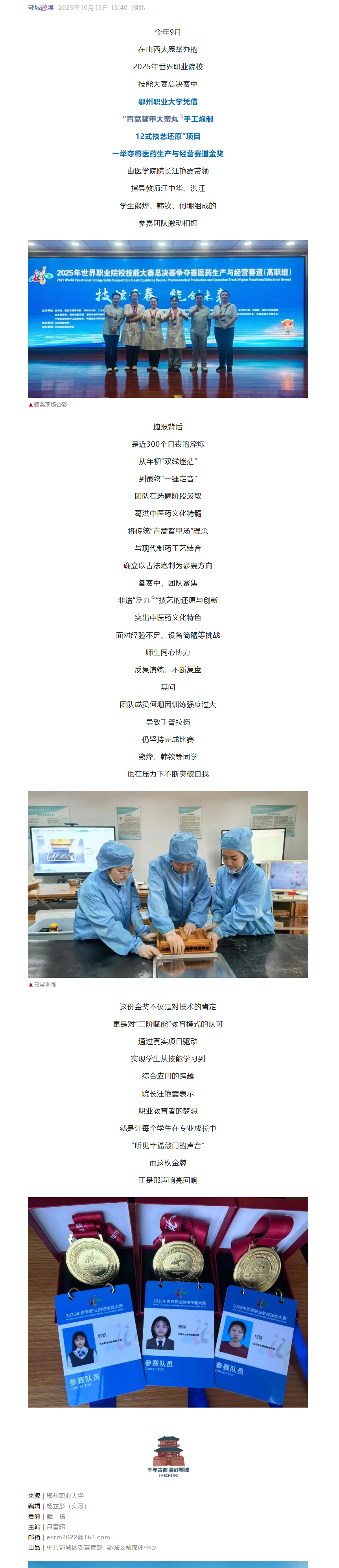 鄂城融媒——鄂州职业大学,斩获世界职业院校技能大赛金奖!