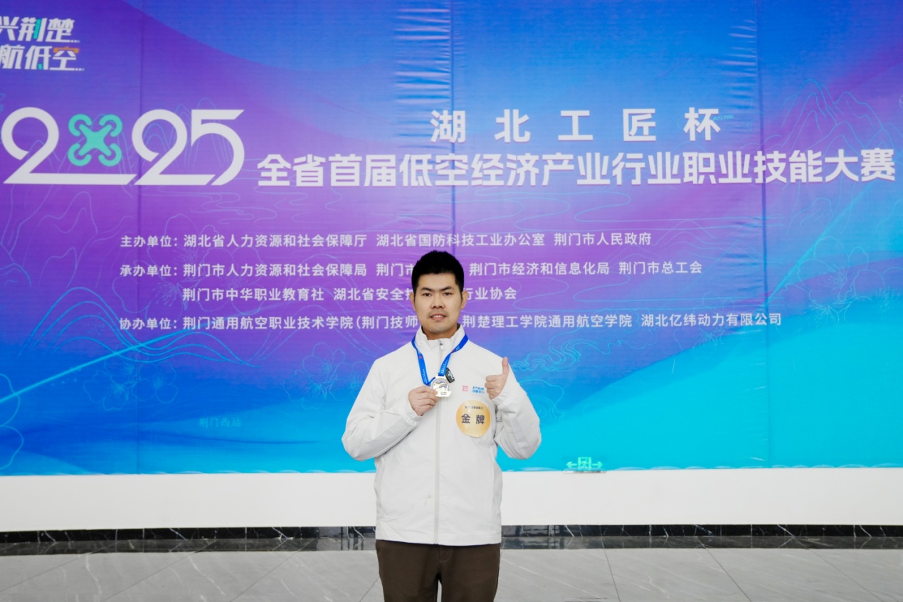 本网讯 10月21日,2025年“湖北工匠杯”全省首届低空经济产业行业职业技能大赛于荆门圆满落幕。我校航空工程学院教师苏汉平与来自全省24支代表队的242名选手同台竞技,凭借精湛技艺与稳定发挥,在航空仪表装配工(电气机械仪表)赛项中脱颖而出,一举夺金,并将获评“湖北省技术能手”荣誉称号。