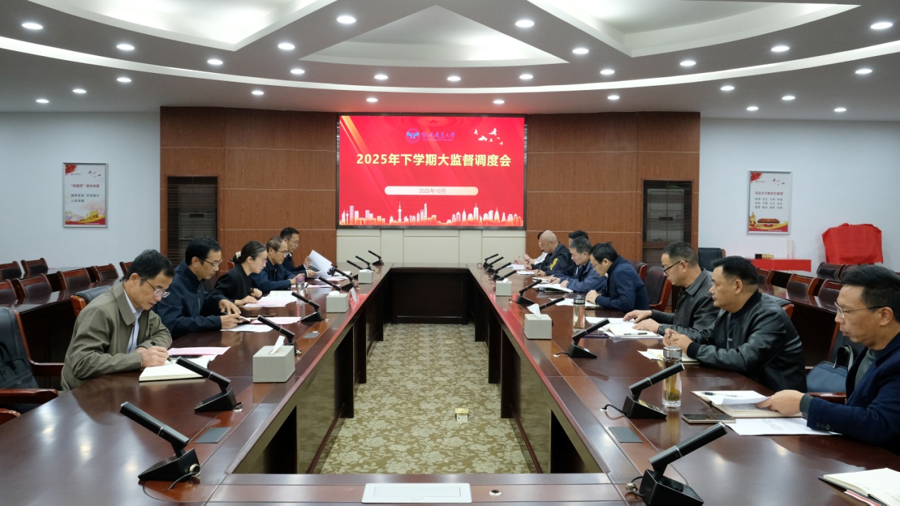 本网讯(记者 何建华) 10月31日,我校组织召开2025年学期大监督调度会。校纪委书记、监察专员严莉主持会议并讲话。校纪委、党政办、组织部、宣传部、教师工作部、学生工作部、审计处、财务处等部门主要负责人参加会议。